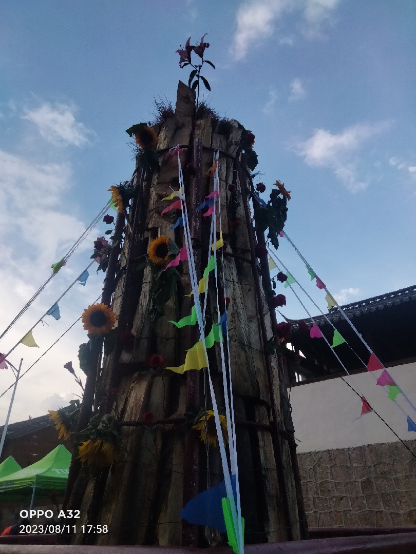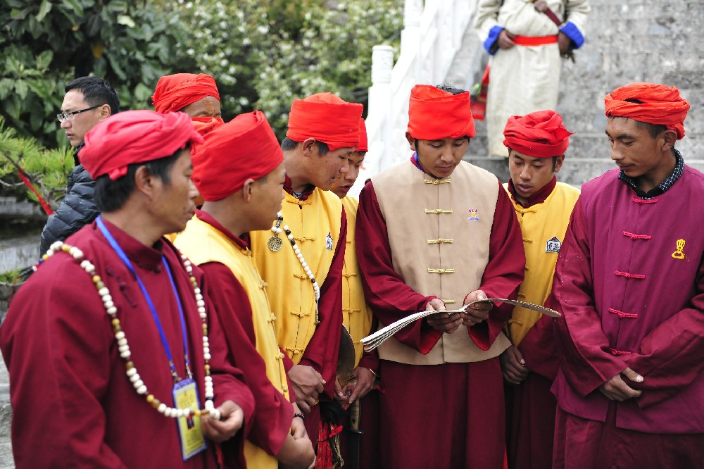 據古老的東巴經《崇搬圖》(創世紀)記載,在宇宙混沌萬物還沒有產生的時候,上方傳來一個美妙的聲音,下方冒出一個白氣,聲音和氣結合產生了天和地。